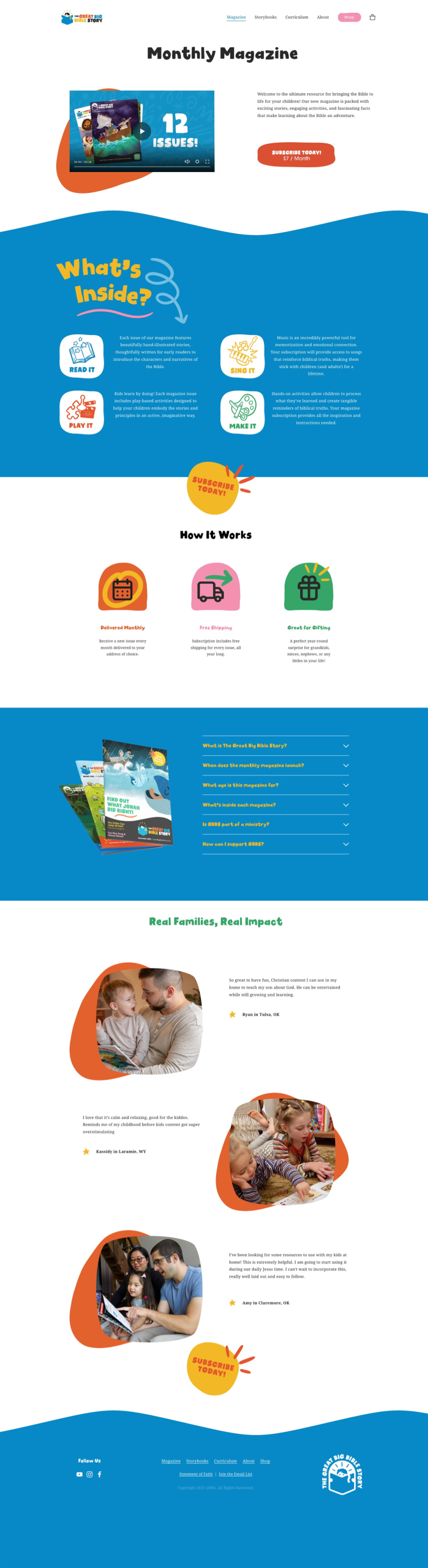 The design strategy prioritized bright, inviting aesthetics to resonate with the brand’s child-focused content. We employed a clear, easy-to-navigate layout, ensuring that visitors could effortlessly browse and discover the monthly magazine, various book titles, and comprehensive curriculum options. Special attention was given to optimizing product presentation, with clear imagery and concise descriptions for each resource.